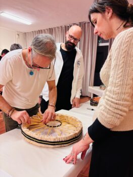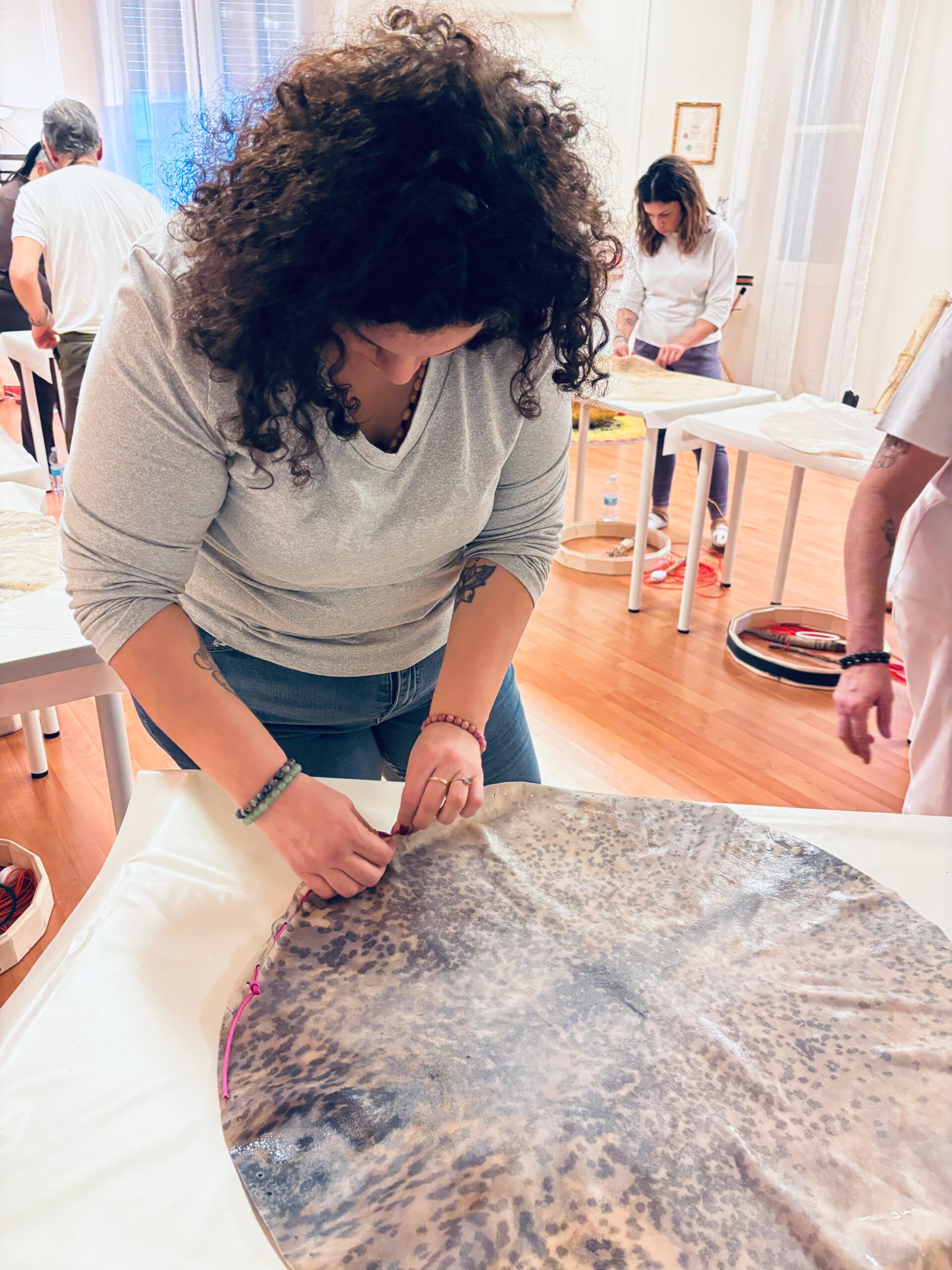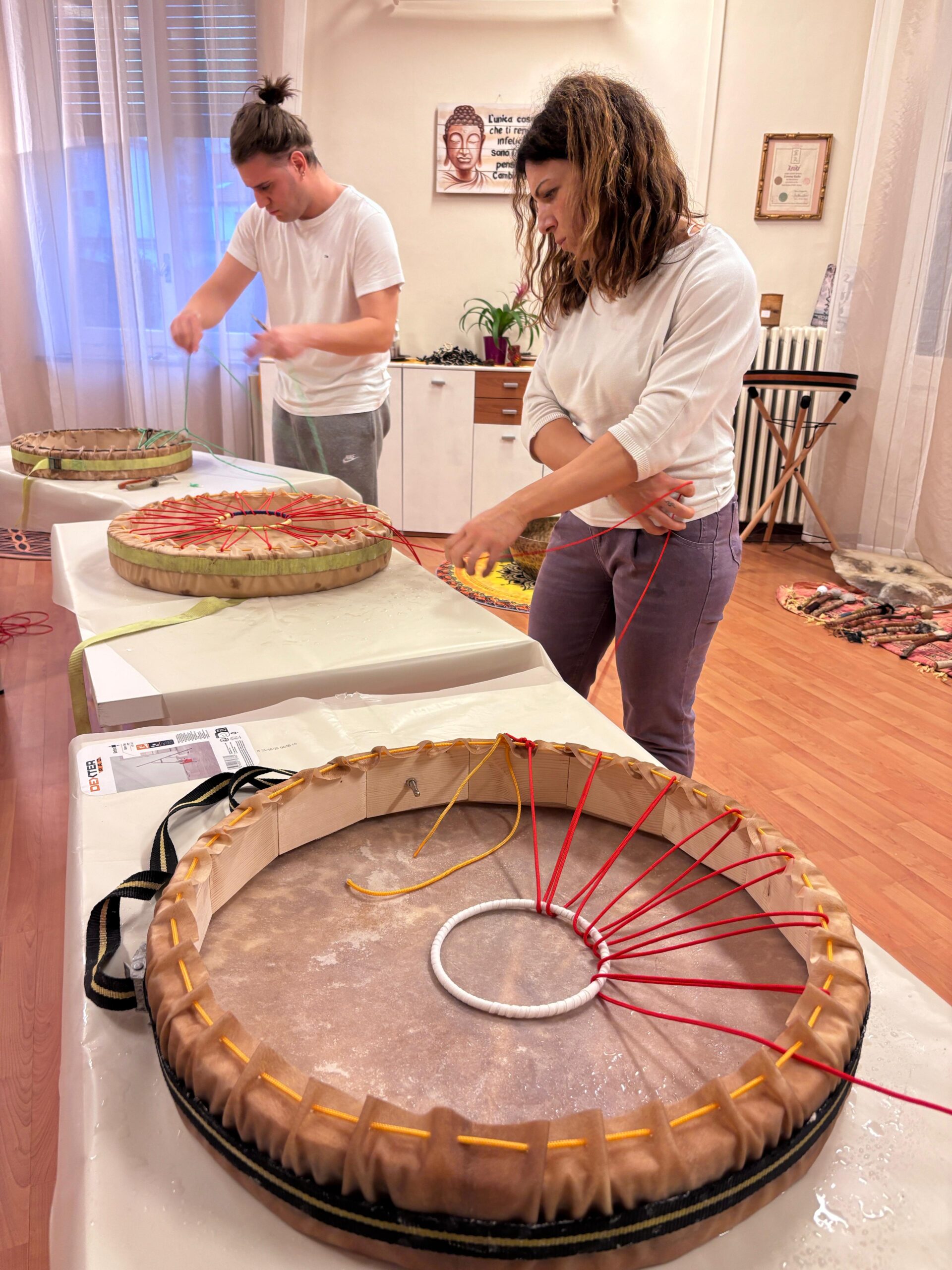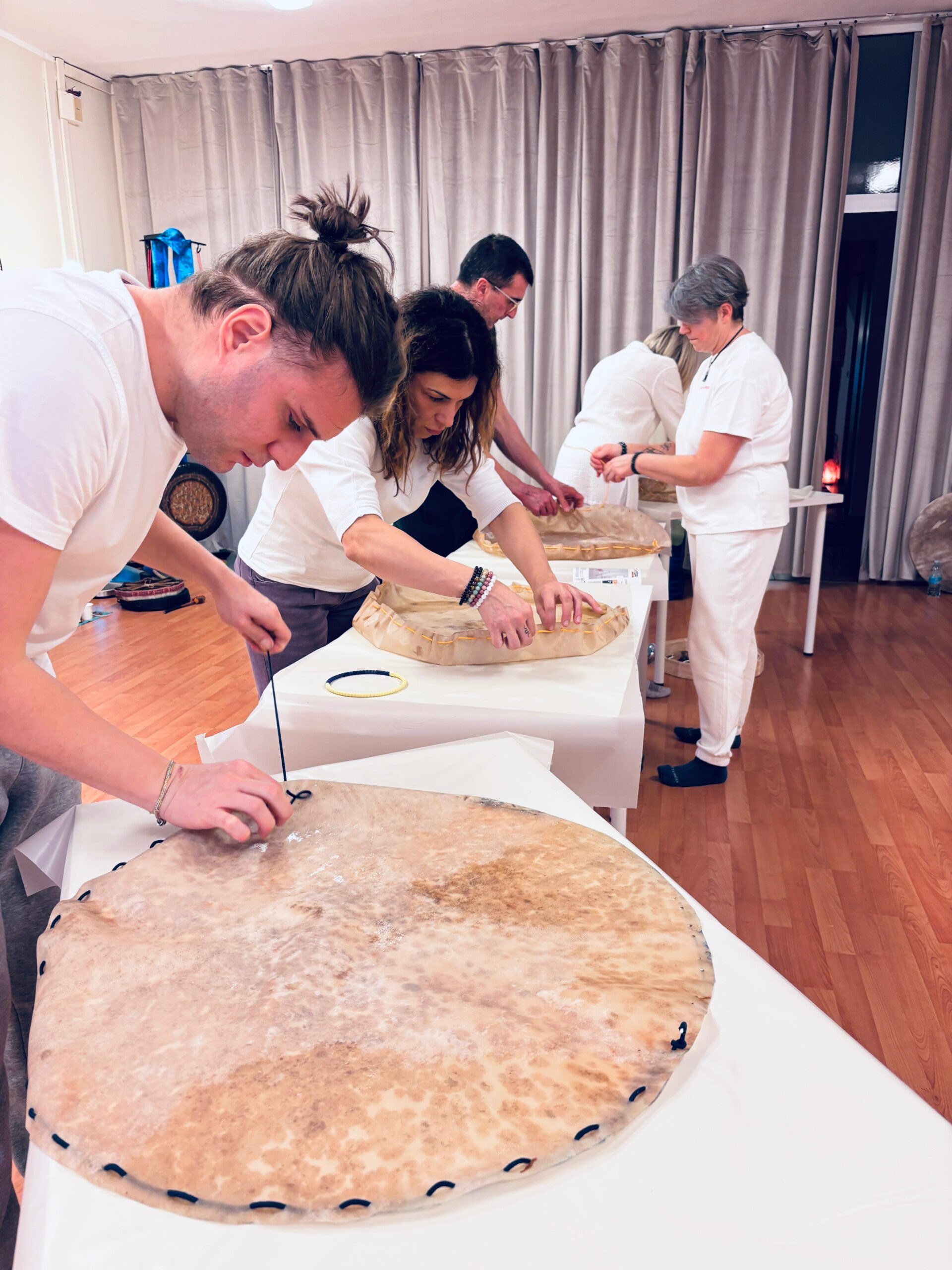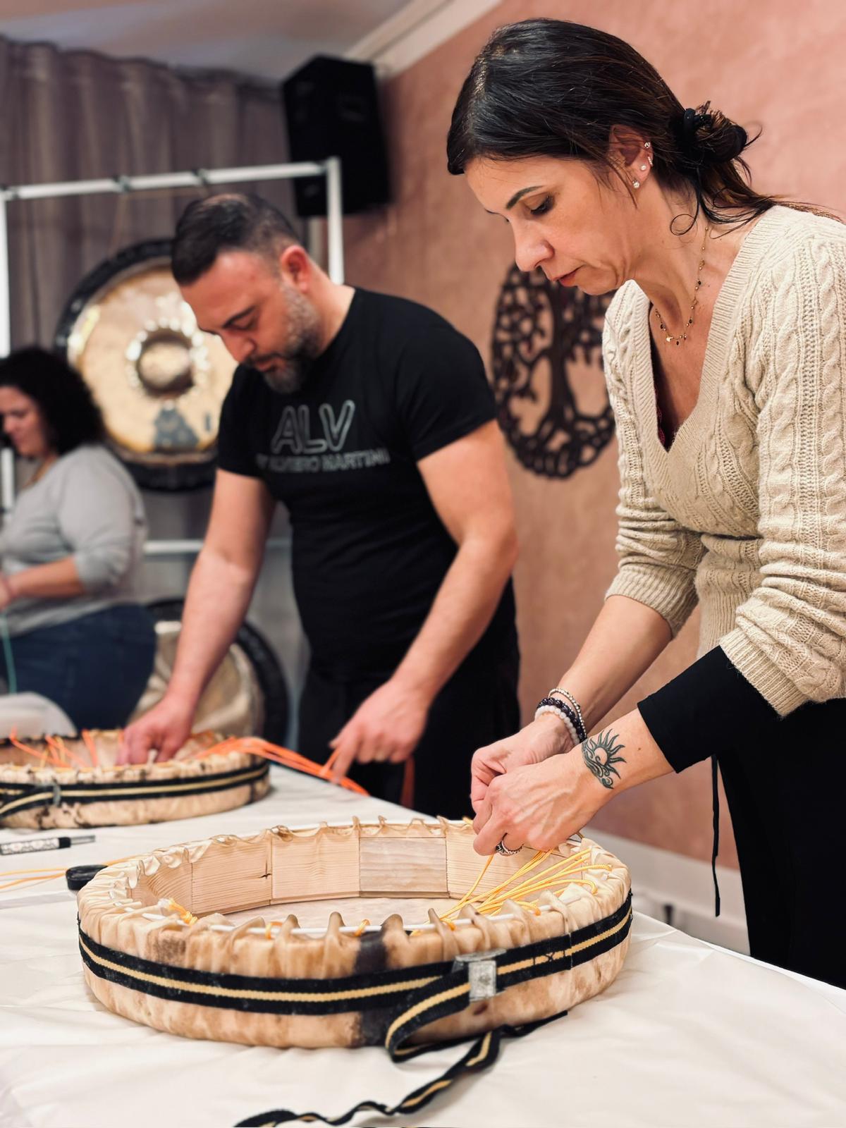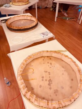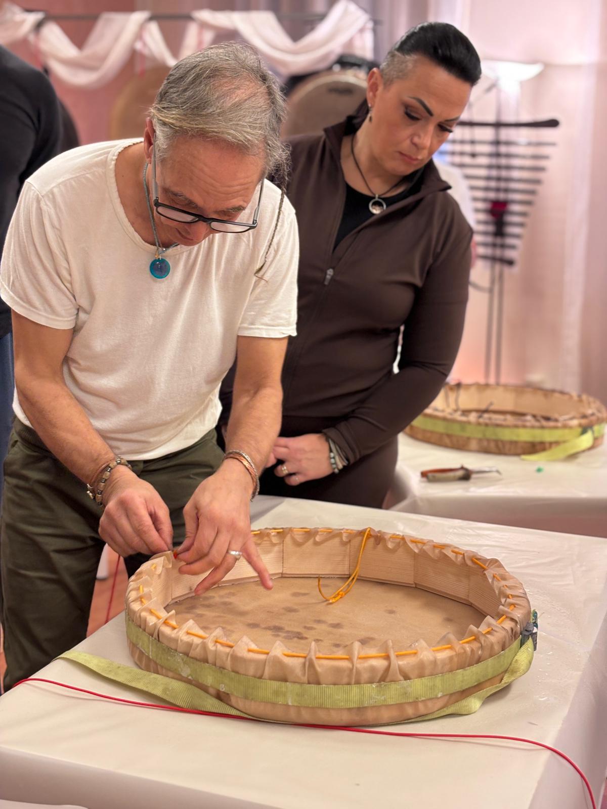 >La giornata di domenica dedicata alla costruzione del tamburo sciamanico
