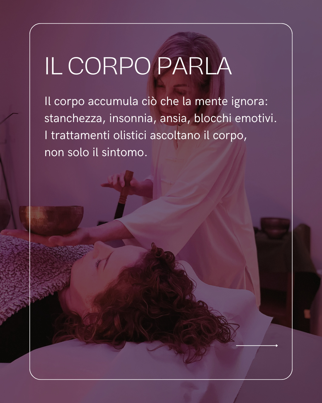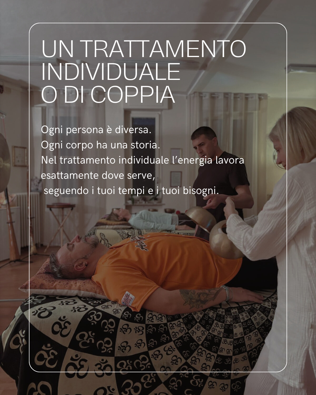 I trattamenti individuali sono costruiti su misura, nel rispetto dei tempi e delle esigenze personali. In uno spazio sicuro e accogliente, il corpo può rilassarsi completamente, permettendo un lavoro energetico più profondo e consapevole.